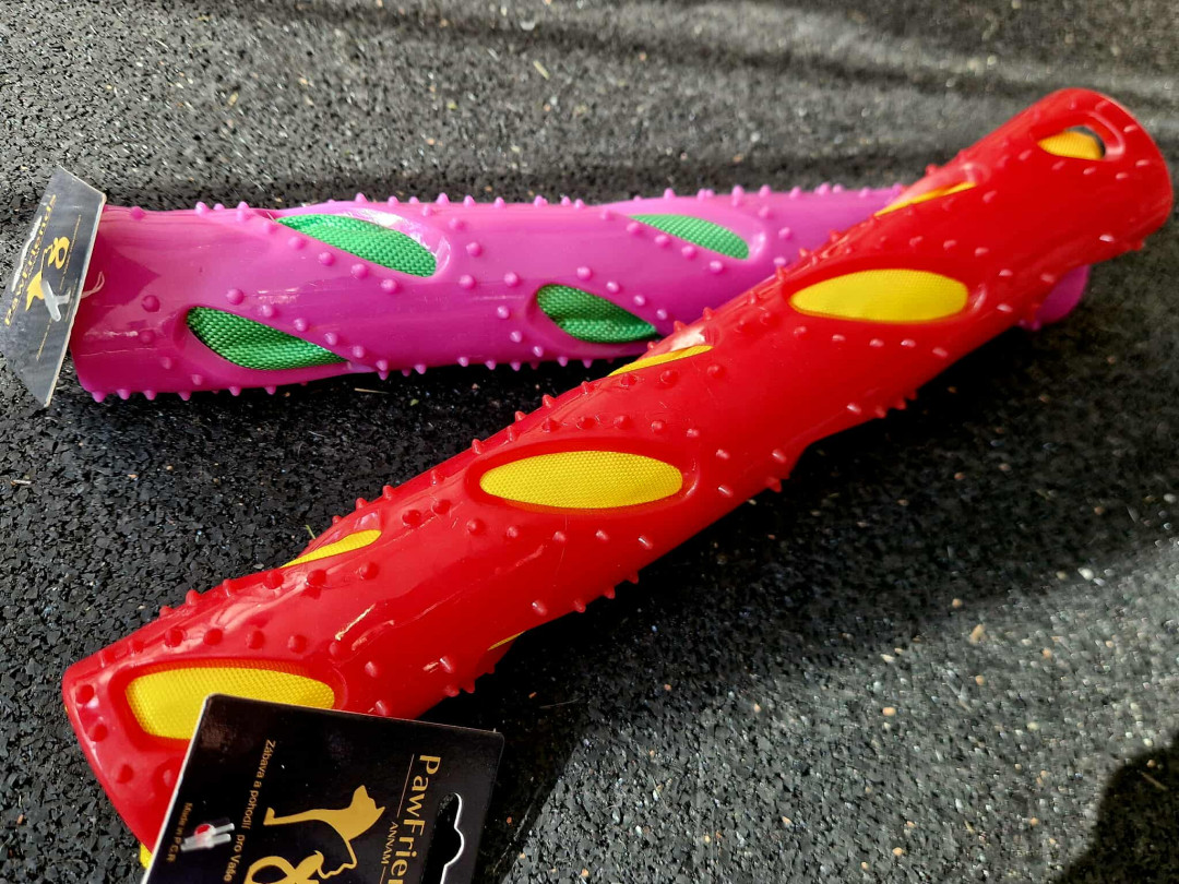 Gumová tyč s otvory, uvnitř pevná šustící látka.